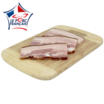 Ces tranches de poitrine de porc fumée (origine France) sont cuites. Proposées en barquette de 3 tranches (200g), juste à réchauffer, elles compléteront vos plats d'hiver telles que la choucroute, la potée ou simplement des lentilles.