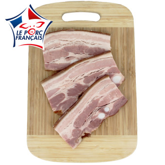 Composition : Poitrine de porc (viande de porc origine France), sel, dextrose, antioxydant : ascorbate de sodium, conservateur : nititre de sodium.Traces éventuelles d'oeuf, lait, soja et fruits à coque.